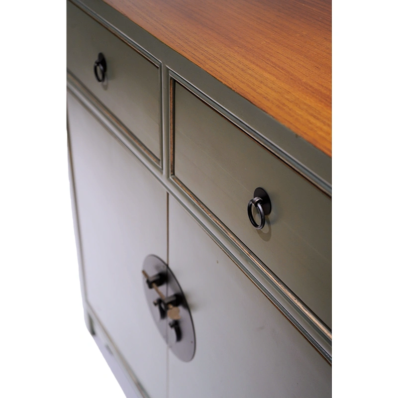 Gray Two-Door Floral-Decorated Shoe Cabinet