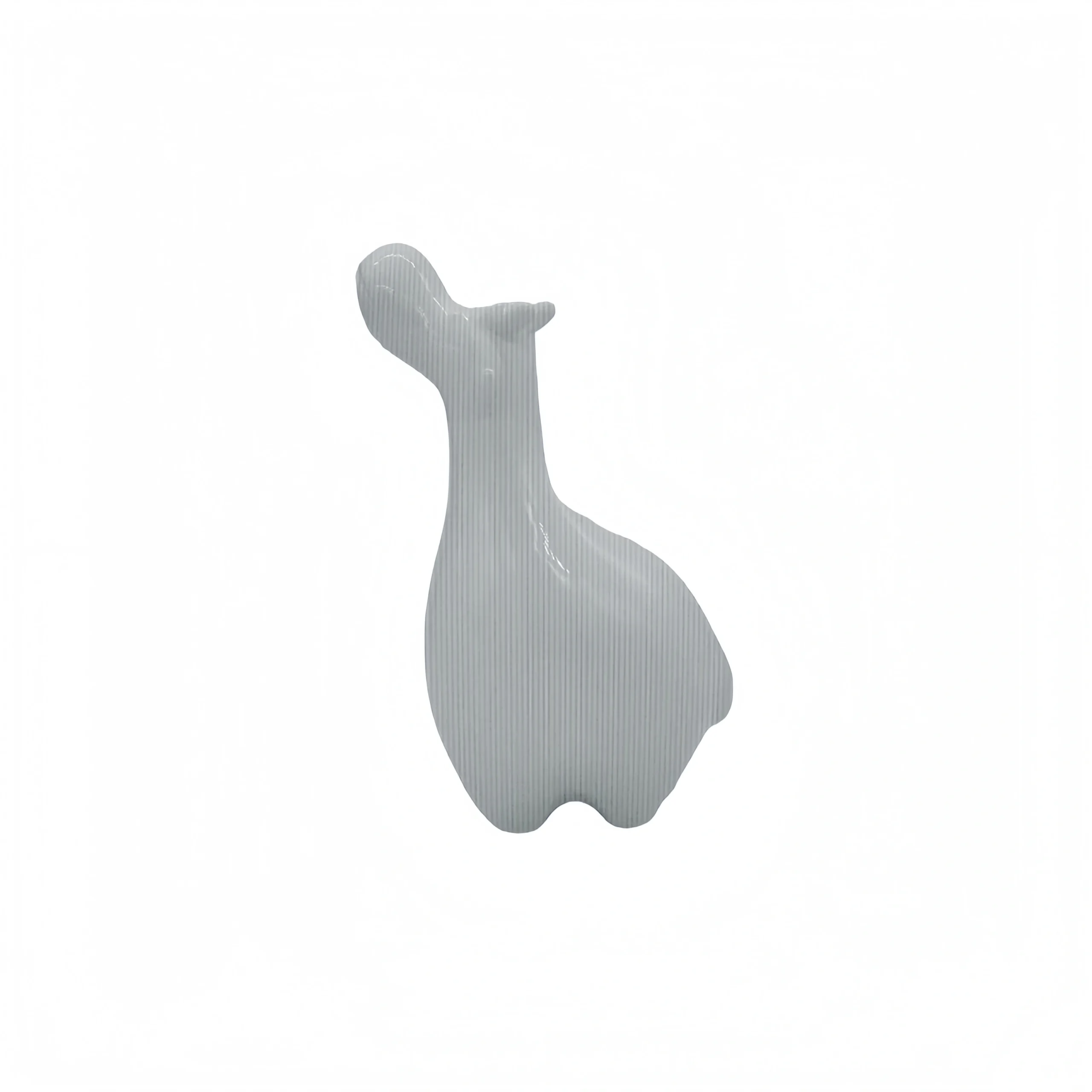 Style: Minimalist and artistic, featuring a long-necked animal form with vertical textured stripes.